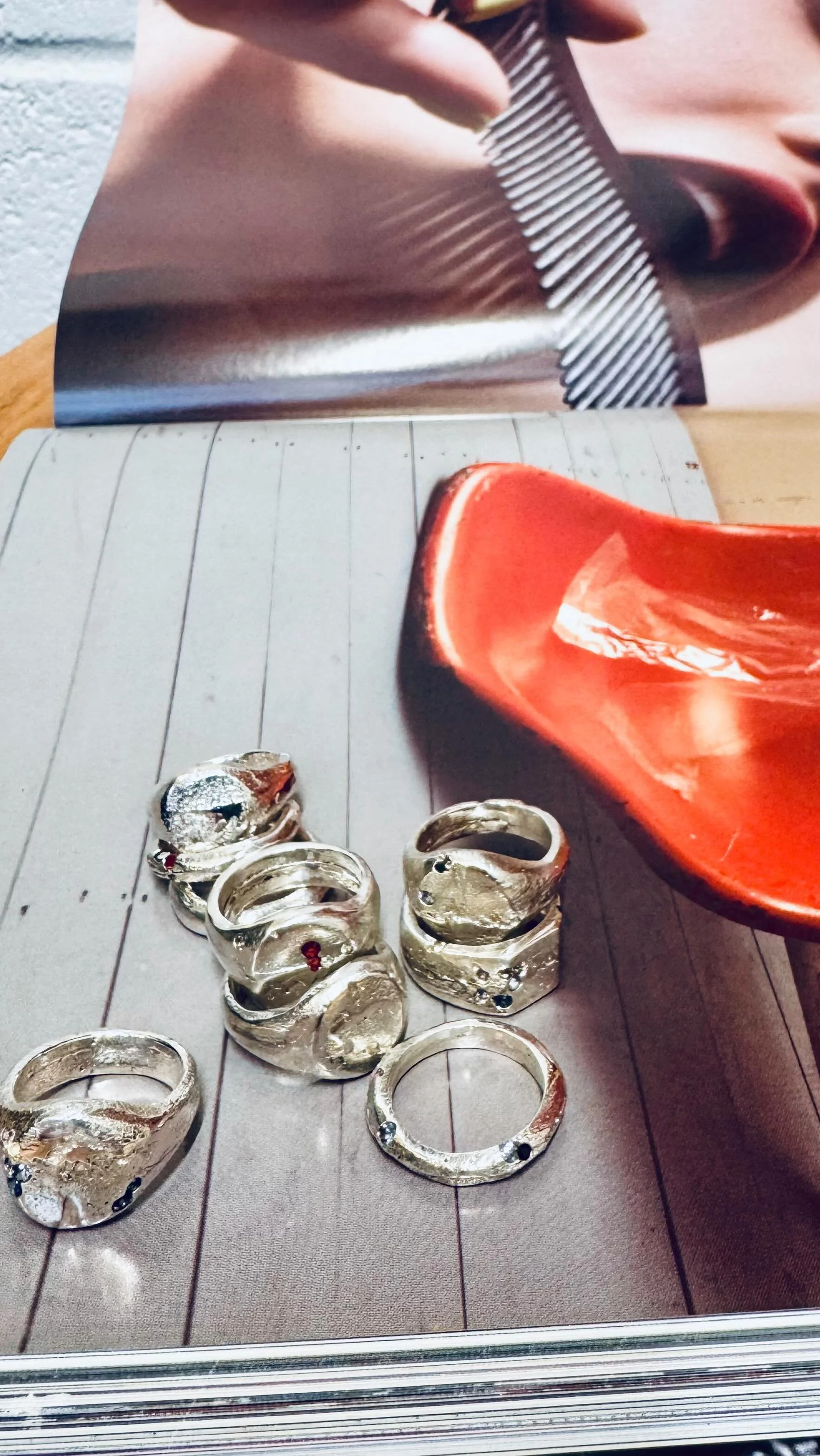 I’m excited to share this production poster of Lily Allen wearing my jewellery — Fold ring, Nugget necklace and Spun bangle by Karin Andréasson Jewellery.