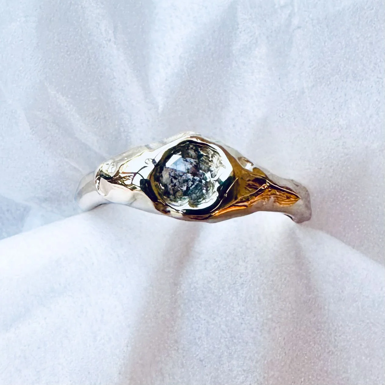 For Lorna & Andrew View fullsize View fullsize View fullsize Beautiful 9ct yellow gold engagement ring with a rose cut salt and pepper diamond MAKE YOUR BESPOKE ENQUIRY NOW